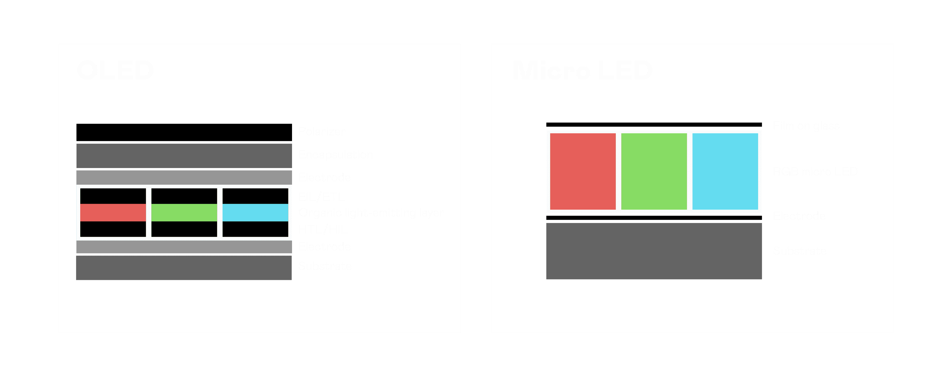 以 LED 做为显示画素,,可让 LED 的发光效率发挥到极致,,,,从而让显示器具备优异的亮度表现,,,,不论是在户外或室内,,均具备出众的显示效果。。同时,,,与使用有机材料的 OLED 相比,,LED 具备更稳定、、、寿命更长的特性,,,,不仅不会有画面烙印问题,,,而且更不容易出现故障、、坏点。。。。